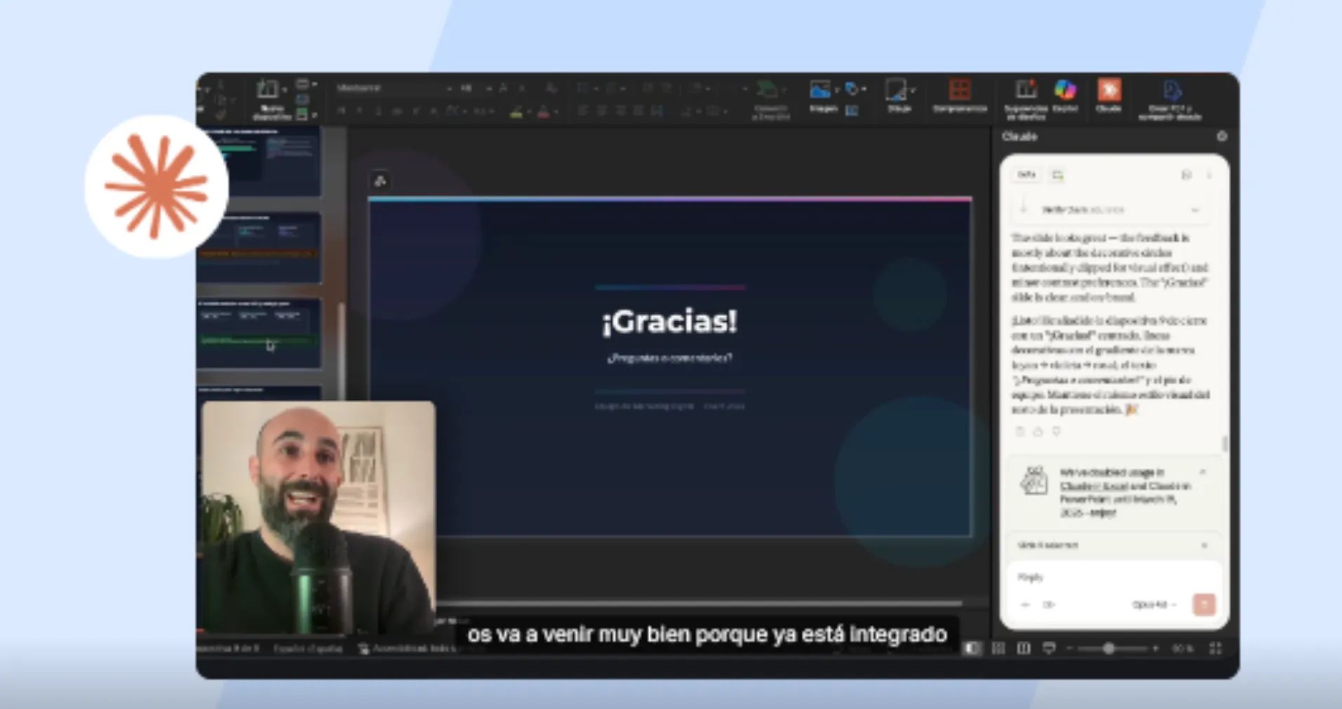 | | | | TUTORIAL IA | 📊 Genera presentaciones en PowerPoint fácilmente con Claude | | Si alguna vez has perdido horas montando diapositivas a mano a partir de una hoja de datos, esto te va a cambiar el flujo de trabajo. Subes tu archivo de referencia, escribes un prompt y Claude genera el deck completo con estructura, narrativa, gráficos y diseño. Te lo mostramos todo en este tutorial. | Paso a paso: | 1️⃣ Instala el add-in de Claude en PowerPoint, abre el panel lateral y adjunta tu archivo Excel. | 2️⃣ Pídele que convierta el archivo en una presentación con storytelling orientado a tu objetivo. | 3️⃣ Revisa lo que ha generado: Claude te explica su estructura narrativa y te pregunta qué quieres cambiar. | 4️⃣ Pide ajustes puntuales (una slide de cierre, reordenar secciones, simplificar gráficos…). Claude los aplicará al instante sin tocar el resto. | Si quieres ver el tutorial completo con todos los prompts, entra aquí. |