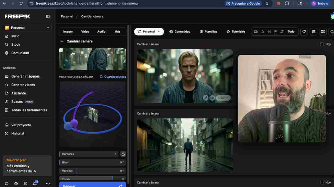 | | | | TUTORIAL IA | 🎬 Genera tomas alternativas de una imagen con un solo clic | | Usa la función Cámara de Freepik para crear múltiples perspectivas de una misma escena. Subes una imagen y obtienes planos laterales, cenitales, primeros planos... todo manteniendo la coherencia visual. En este tutorial te contamos cómo hacerlo. | Paso a paso: | 1. Abre Freepik → Otros → Cámara Sube tu imagen y ajusta orientación, profundidad, zoom y ángulo. | 2. Genera tomas alternativas como planos laterales o traseros. | 3. Prueba con escenas complejas. | 4. Explora composiciones rápido para storyboards, ideas de campaña o visualizar flujos narrativos. | 5. Genera tu set en segundos con múltiples perspectivas, sin sesiones fotográficas. | Si quieres ver el tutorial completo, entra aquí. |