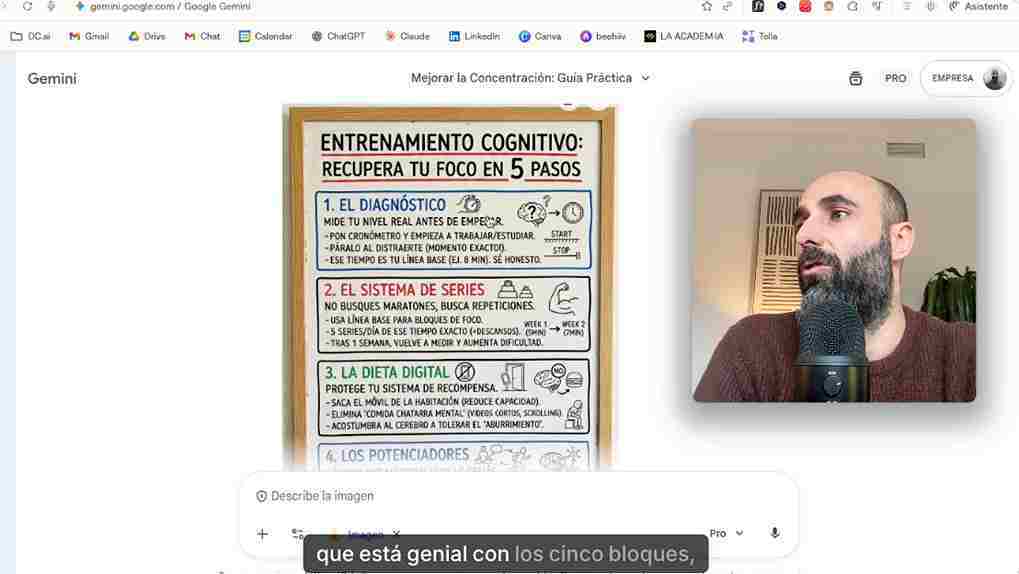 | | | | TUTORIAL IA | 👨🏻💻 Convierte vídeos en potentes infografías con Gemini | | ¿Quieres transformar un vídeo largo en una infografía visual que compartir en redes? Con Gemini y Imagen Pro lo haces en minutos. Te lo mostramos en este tutorial. | Paso a paso: | 1️⃣ Copia la transcripción del vídeo. | 2️⃣ Pégala en Gemini y pídele un resumen. | 3️⃣ Convierte el resumen en estructura de infografía. | 4️⃣ Genera la imagen con Nano Banana Pro. | 5️⃣ Descarga y comparte. | Si quieres ver el tutorial completo, entra aquí. |