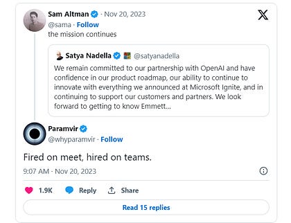 😮 Despido y Contratación: La Aventura de SAM en 72 Horas sesión # 31El caos se apodera en una de las novelas(culebrones) de tech mas grandes! y otras noticias!Hola y bienvenidos Os saludamos rapidisimo por que el culebrón(novela) tech de la semana, no tiene pérdida. 😮 Tiempo de lectura: Con una tila(cafe o té) Caótico. Dramático. Histórico. La noticia de la semana y del año!Tuvimos cinco temporadas emocionantes de "Succession", "Game of Thrones" y "The Sopranos" compactadas en un solo fin de semana. La conmoción comenzó el viernes con el sorprendente anuncio de que la junta directiva de OpenAI está despidiendo a Sam Altman, su CEO, para reemplazarlo con Mira Murati, la actual CTO y a hoy lunes 21 ya tiene nuevo CEO ex TWITCH. Aquí un resumen: 1er capitulo “el despido”Todo empezó un viernes 17 de noviembre de 2023. Como muchos ya sabrán, el pasado viernes al mediodía, Sam Altman, una figura emblemática en el ámbito de la inteligencia artificial, fue despedido en lo que algunos consideran una emboscada, mientras que nuestro CEO Henry Jiménez lo ve como una estrategia astuta. Esta jugada resultó en dos consecuencias notables: primero, un aumento en las acciones de Microsoft el lunes 20, y segundo, la adquisición de Altman, considerado uno de los activos más valiosos en el campo de la IA. Para leer la información completa +Info aquí Para darle un poco de salseo hemos creado una encuesta ¿Qué opinais?