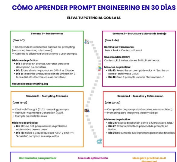 📅 Fecha: 22 de Noviembre ⏰ Hora: 18:00 (España) | 11:00 (Costa Rica) 🎓 Modalidad: En directo, por YouTube 📌 Suscríbete al canal y activa la Campanita 🔔 para que te llegue la notificación. GUÍA IA - APRENDE INGENIERIA DE PROMPTS EN 30 DIAS 🔥 Cómo aprender ingeniería de prompts en 30 días… y no en las “2 horas” que prometen los vendehúmos de turno ¡ Es todo por hoy! ¡Disfrutad el inicio de semana Nos vemos en la próxima edición Saludos!! Team Evolupedia