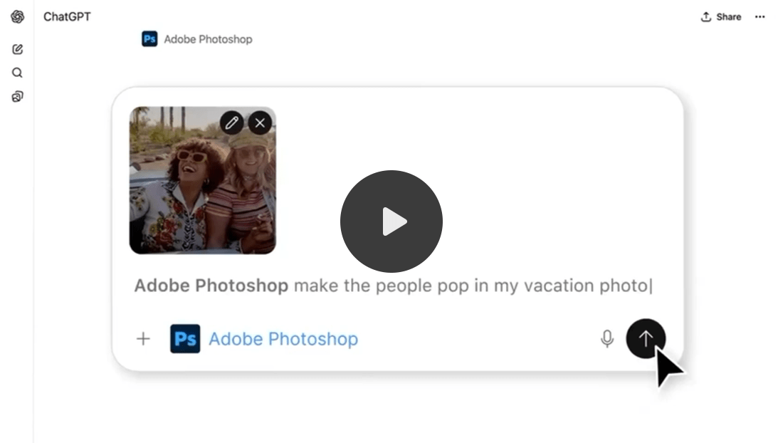 ¿Harto de andar cambiando de pestaña para retocar una imagen o pelearte con un PDF hecho un asco? Adobe planta Photoshop, Express y Acrobat directamente en ChatGPT. Le describes qué quieres cambiar, te sugiere la herramienta adecuada y luego ajustas todo con deslizadores en vez de rebuscar menús infinitos.
