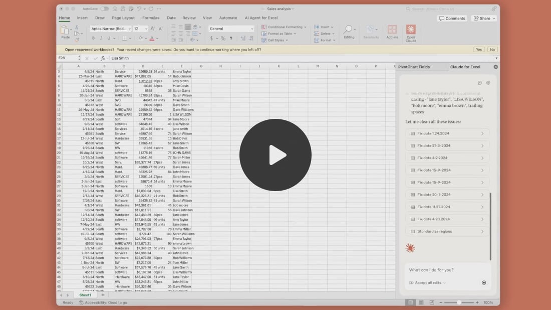 Prompt de ejemplo: He recopilado cientos de respuestas de una encuesta sobre sostenibilidad en el campus. Ayúdame a transformar el archivo CSV en materiales listos para ejecutivos para revisión por los stakeholders. Crea: un libro de Excel con tablas de análisis formateadas, un informe en Word con narrativa basada en datos y una presentación en PowerPoint con visuales de calidad para sala de juntas.