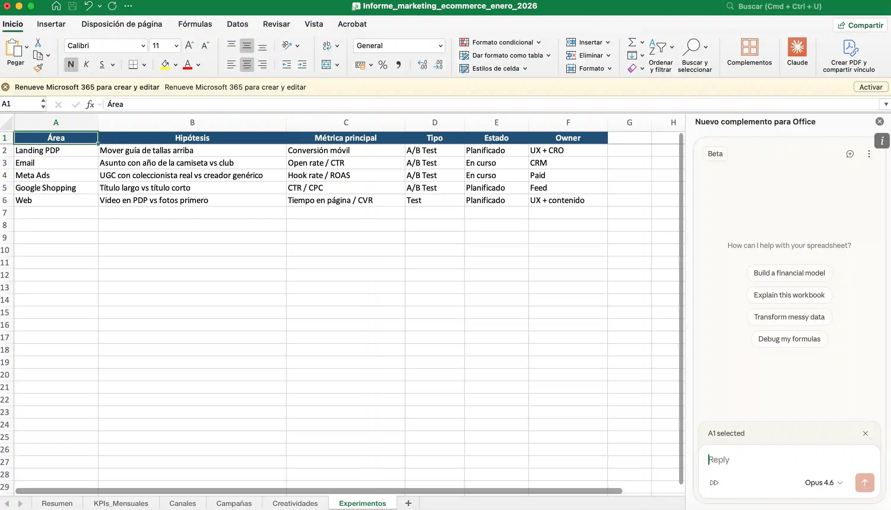 4. 📊 CLAUDE EN EXCEL — IA dentro de tu hoja de cálculo |