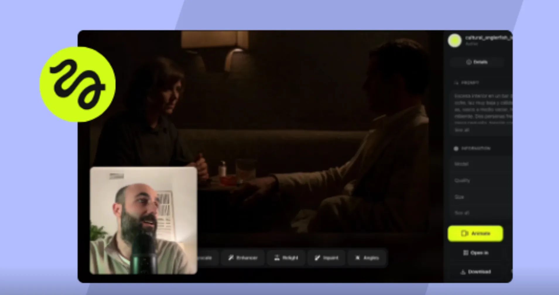 3️⃣ Anima el fotograma con Kling 3.0 añadiendo instrucciones de movimiento, microgestos o diálogo con lip sync. |